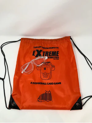 This recall involves safety goggles sold with the prototype Throw Throw Burrito Extreme Going Pro Edition Dodgeball Card Outdoor Game sets. The goggles were sold with the game sets in a neon orange nylon drawstring backpack with the name of the game in black lettering.