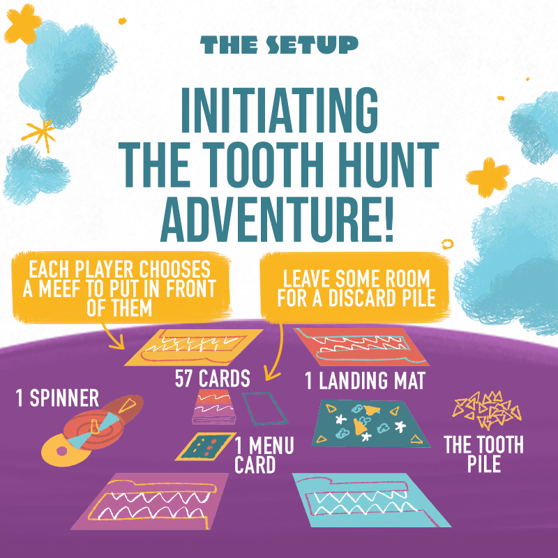 Collect cards and use the Spinner to get closer to filling Meef’s smile back up. The first one with a full set of teeth wins! With counting practice, fun strategy challenges, and a silly story you can read together, this game is easy for anyone to sink their teeth into.