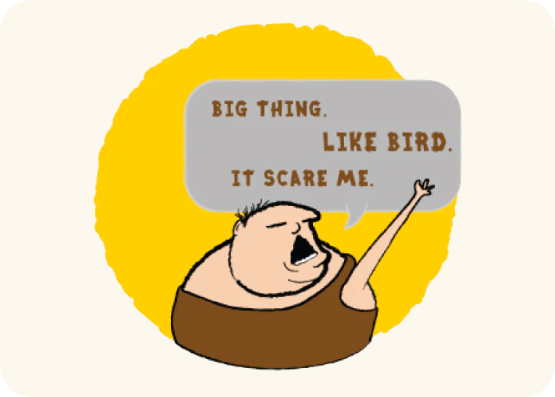 U MUST SPEAK IN SINGLE SYLLABLES OR GET HIT WITH STICK.