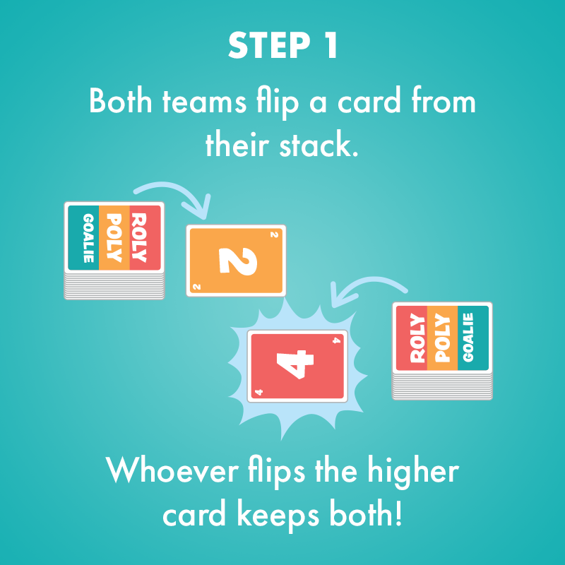 Both teams flip over a card and whoever has the higher one gets to keep both. If there’s a tie, you’ll both have to roll, throw, or dodge the soft, adorable Roly Polies to get those cards. Whoever has the most cards at the end of the game wins. It’s part carnival game, part kids card game, all screen free fun that even grown-ups will enjoy.