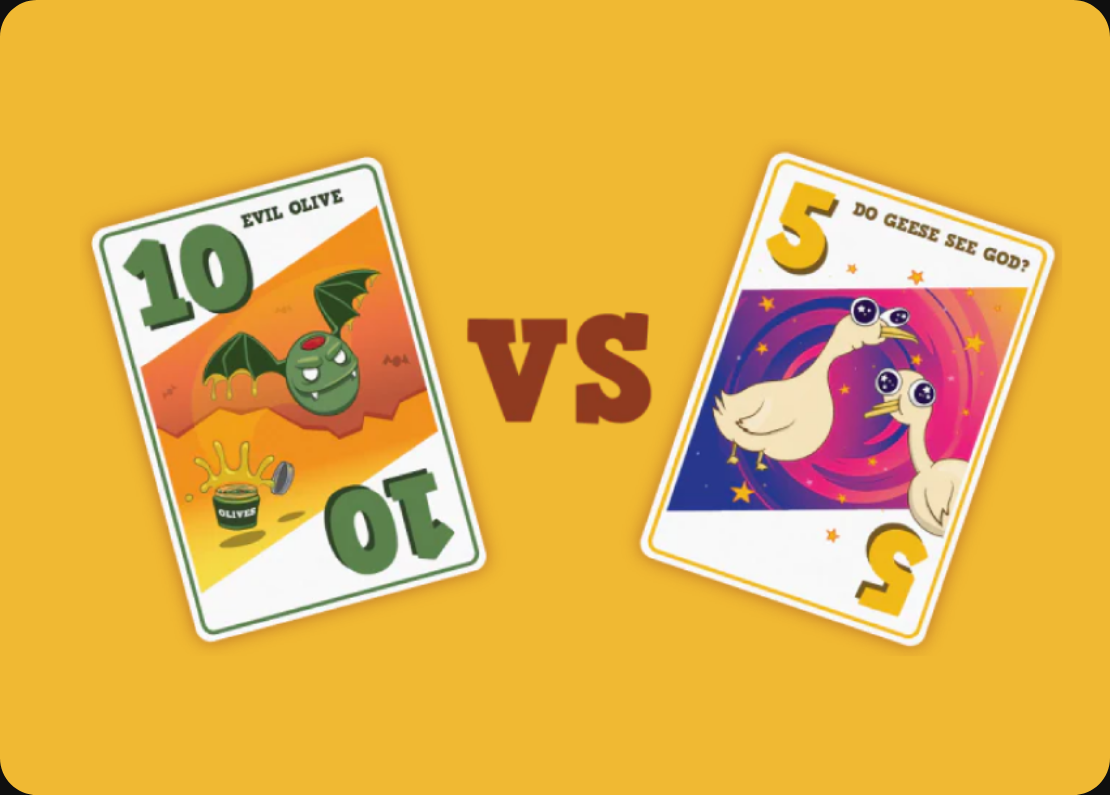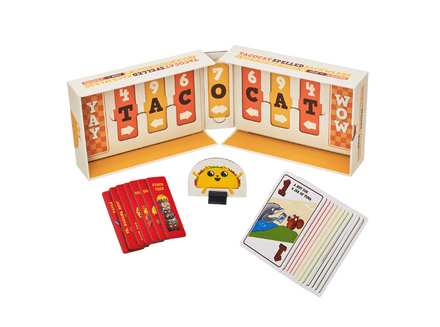 Tacocat Spelled Backwards is a game of clever card matchups in a box that is also a board with a cat who is also a taco. Unfold the box, then duel head-to-head in palindrome-themed battles. The higher card wins the round and brings Tacocat closer to your side. Each card victory moves you one step closer to winning.